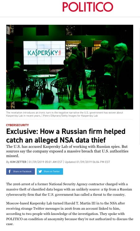 How a Russian Firm Helped Catch an Alleged NSA Data Thief