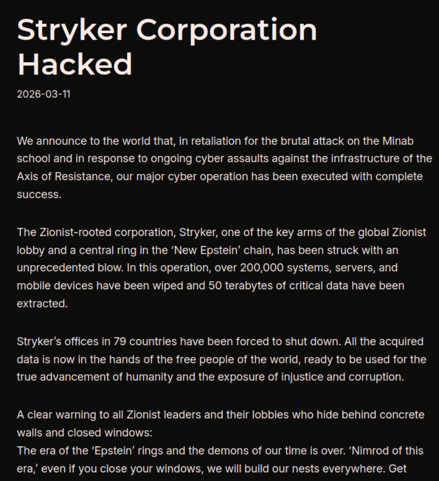 Iranian Hacktivists Strike Medical Device Maker Stryker in "Severe" Attack that Wiped Systems